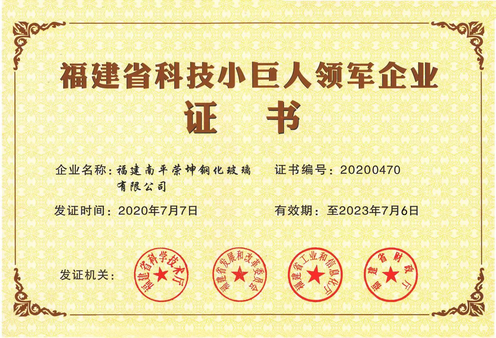 2020年7月,我司獲得了由福建省科學(xué)技術(shù)廳、福建省發(fā)展和改革委員會、福建省工業(yè)和信息化廳、福建省財政廳聯(lián)合頒發(fā)的“福建省科技小巨人領(lǐng)軍企業(yè)”榮譽證書